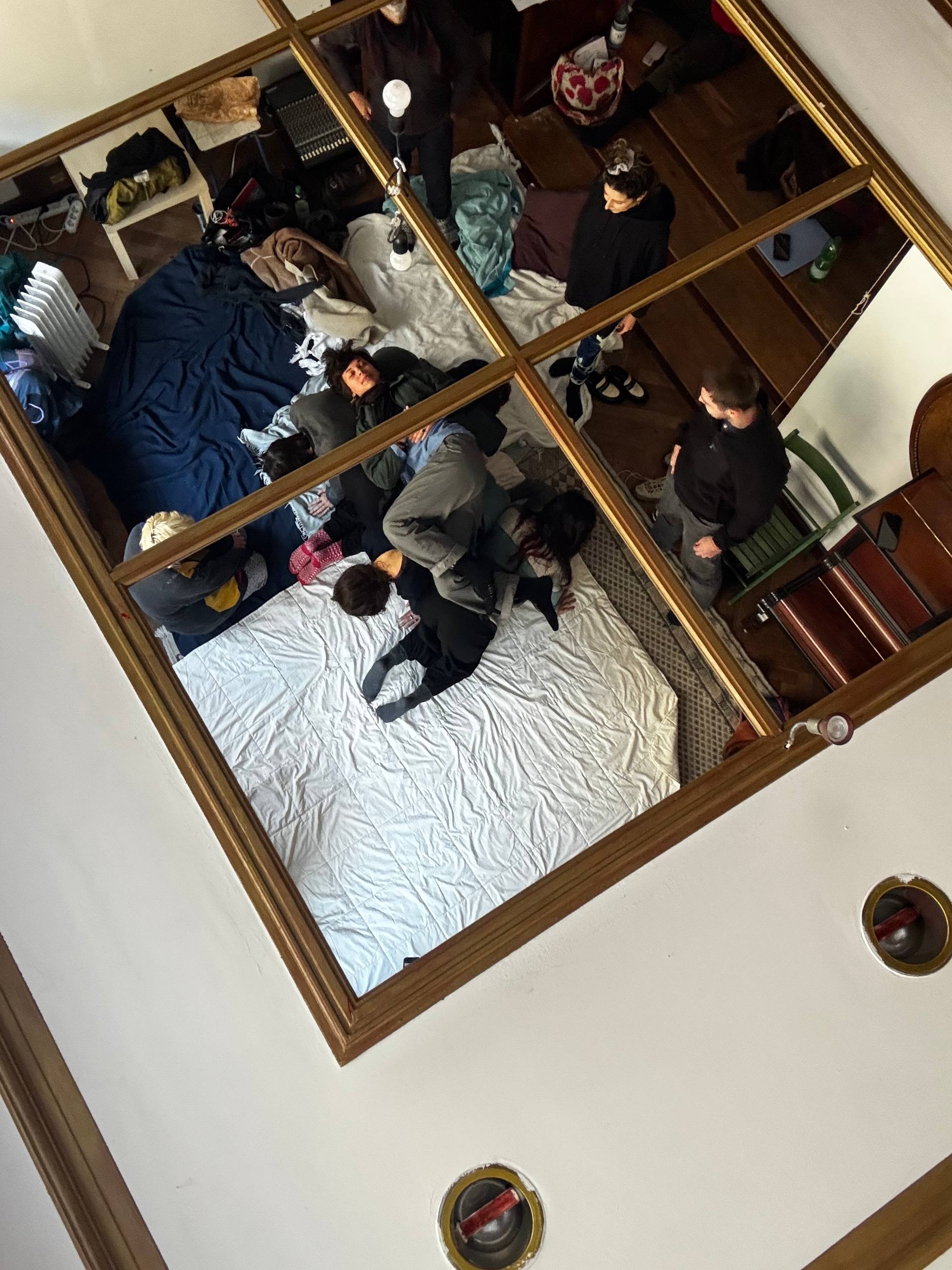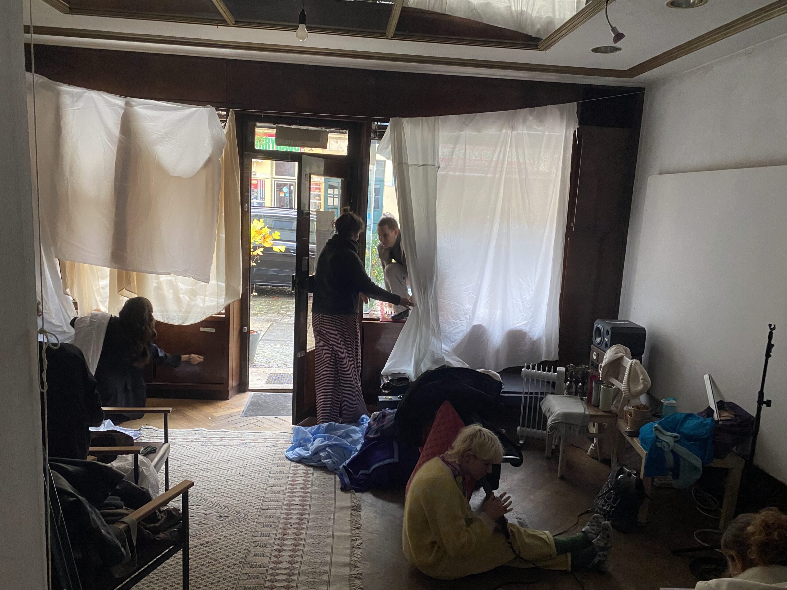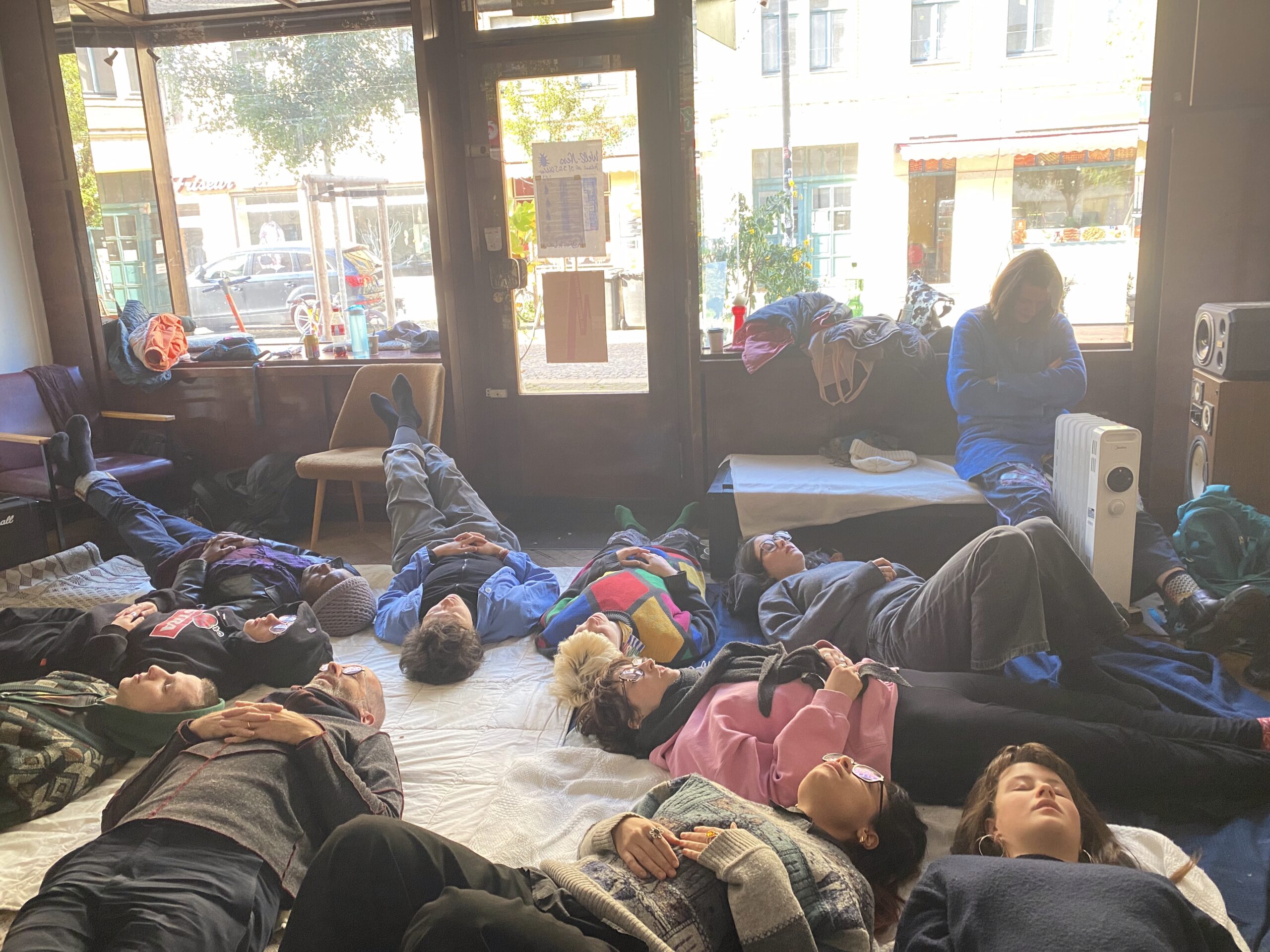 At the beginning of the academic year, we were invited by Knut Klaßen to lead a one-week workshop with students from the Stage Design and Visual Arts departments of the Mix & Match studio at HfBK Dresden. The workshop took place at the Käferklause and brought together students from different artistic backgrounds to explore sleep, hypnagogic states, and altered modes of attention as material and methodology for artistic practice.