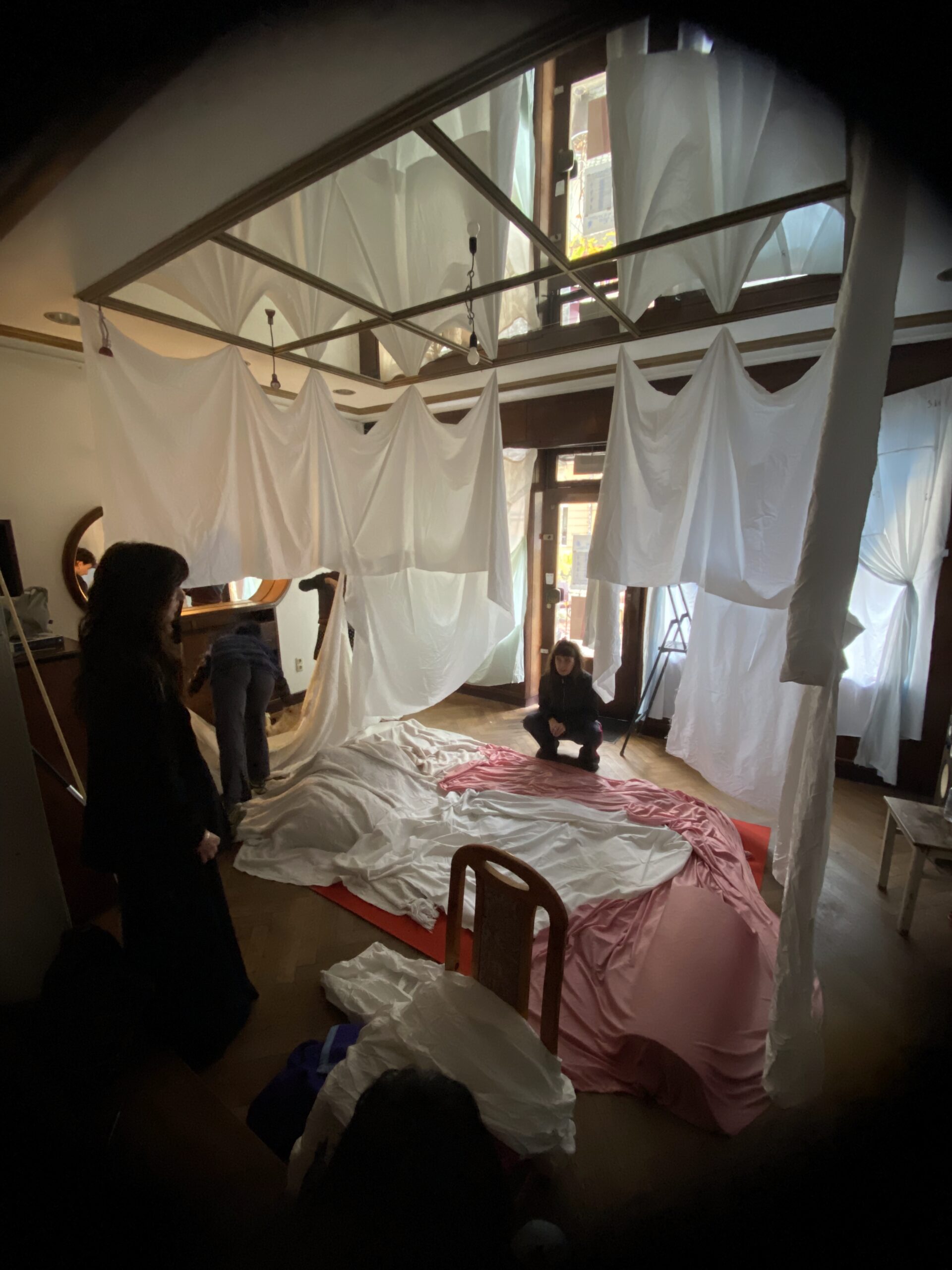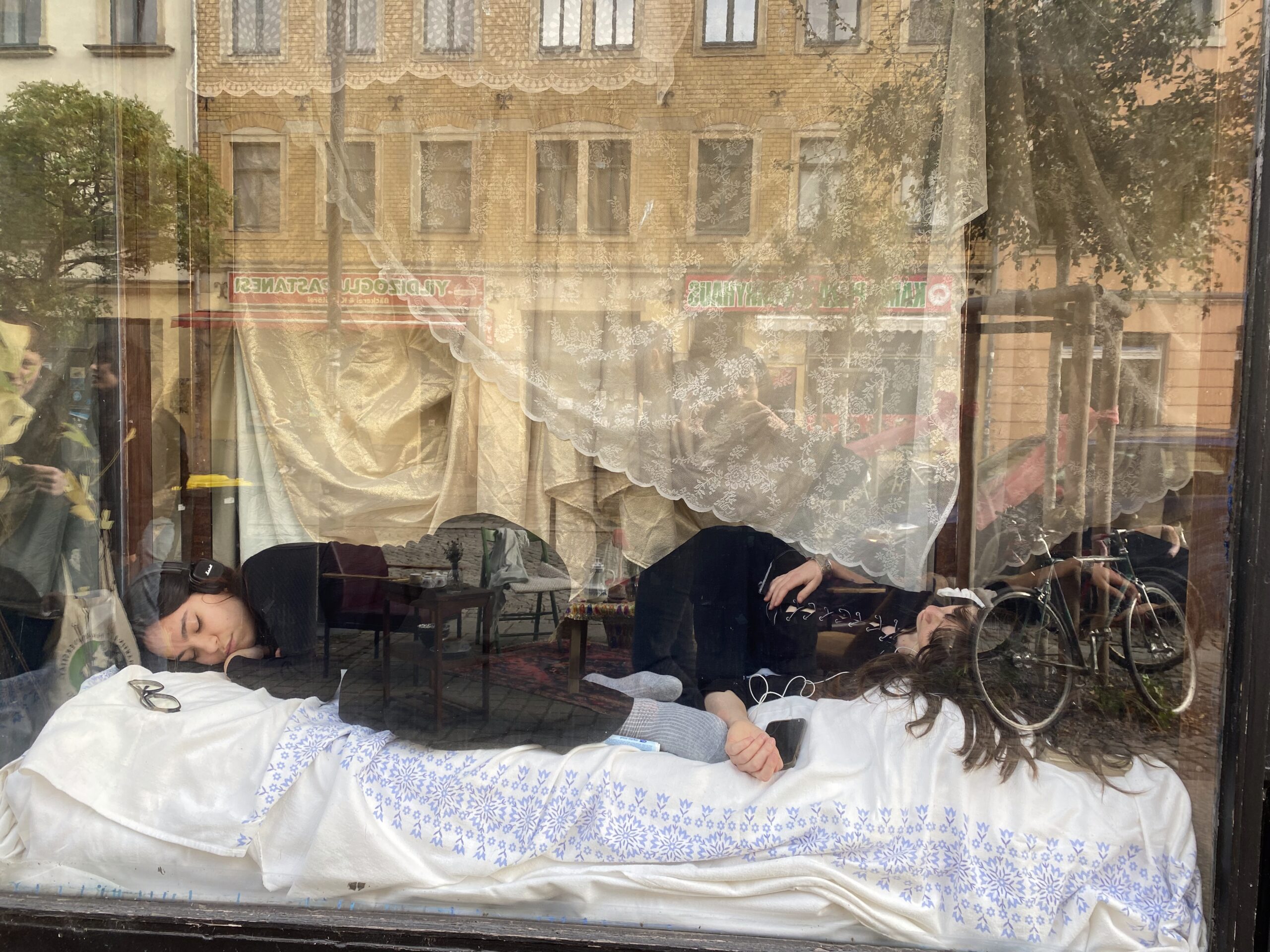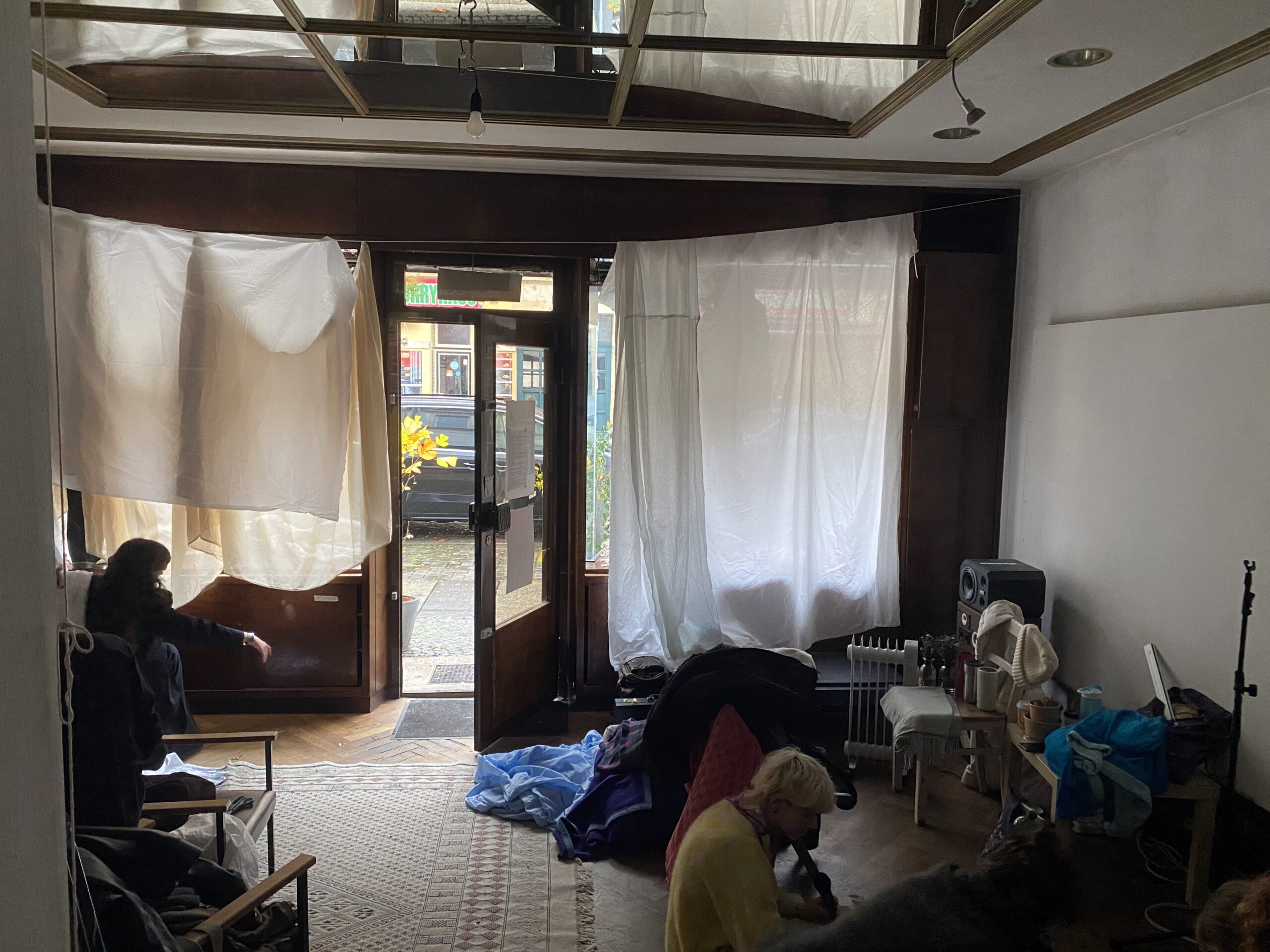 At the beginning of the academic year, we were invited by Knut Klaßen to lead a one-week workshop with students from the Stage Design and Visual Arts departments of the Mix & Match studio at HfBK Dresden. The workshop took place at the Käferklause and brought together students from different artistic backgrounds to explore sleep, hypnagogic states, and altered modes of attention as material and methodology for artistic practice.