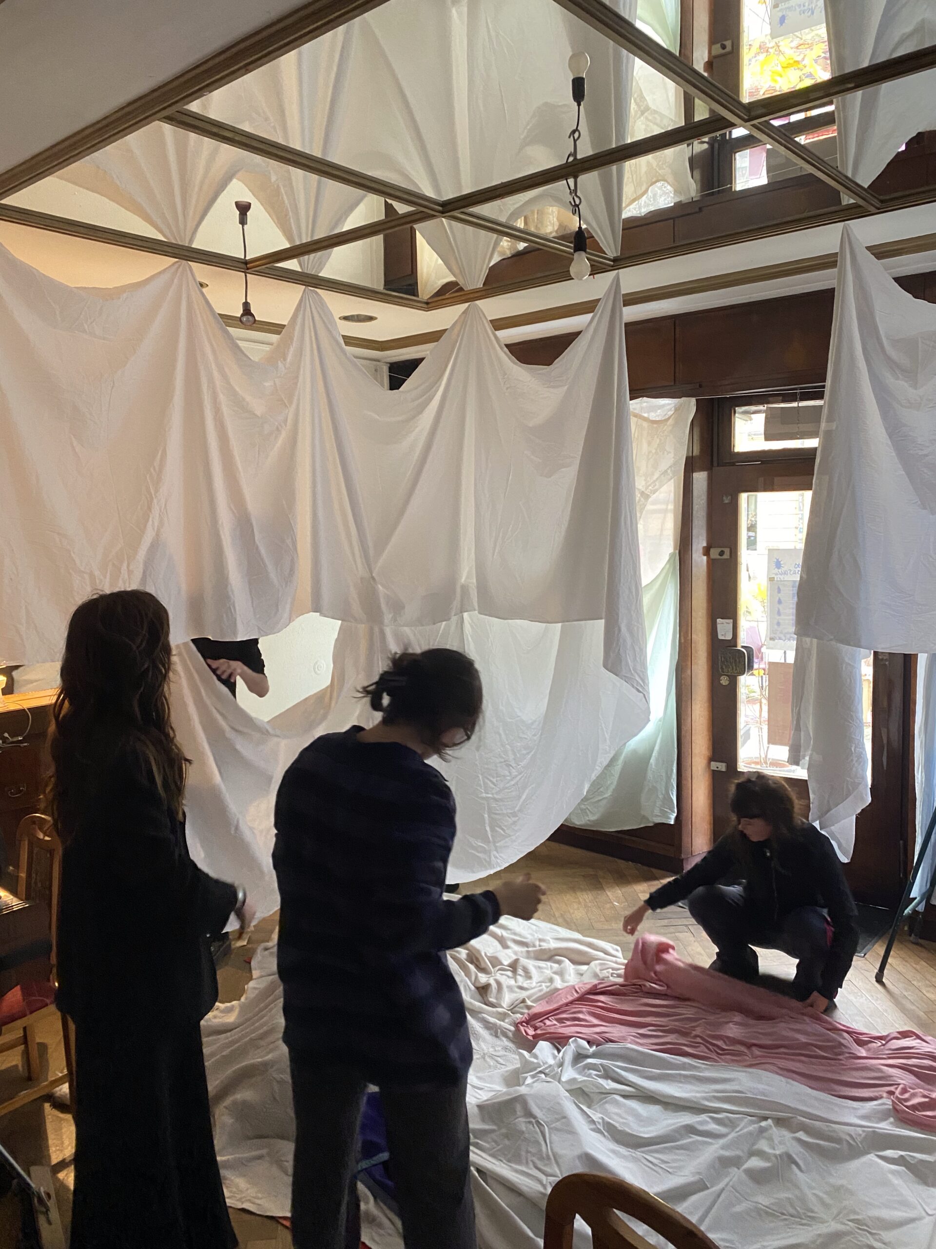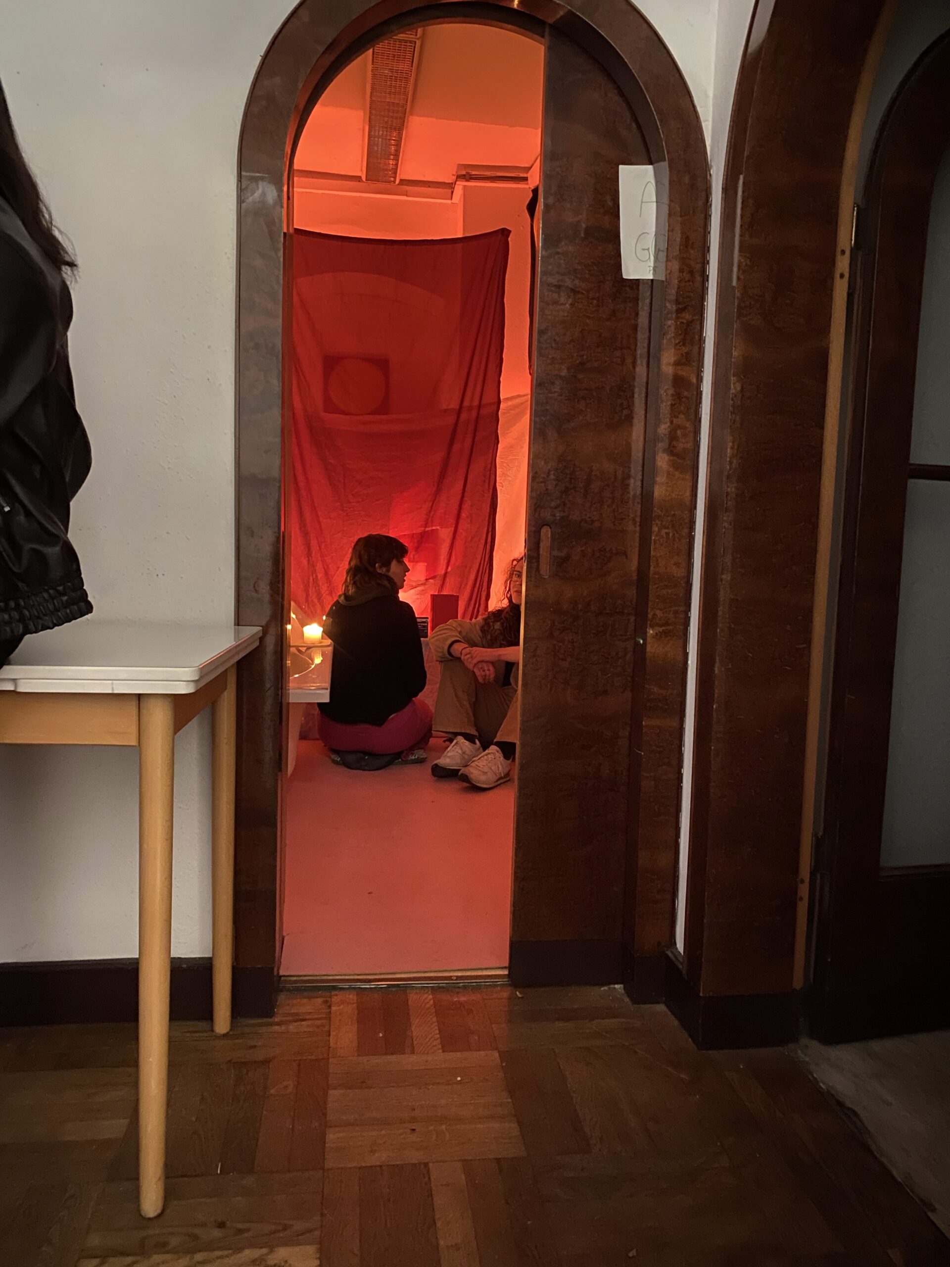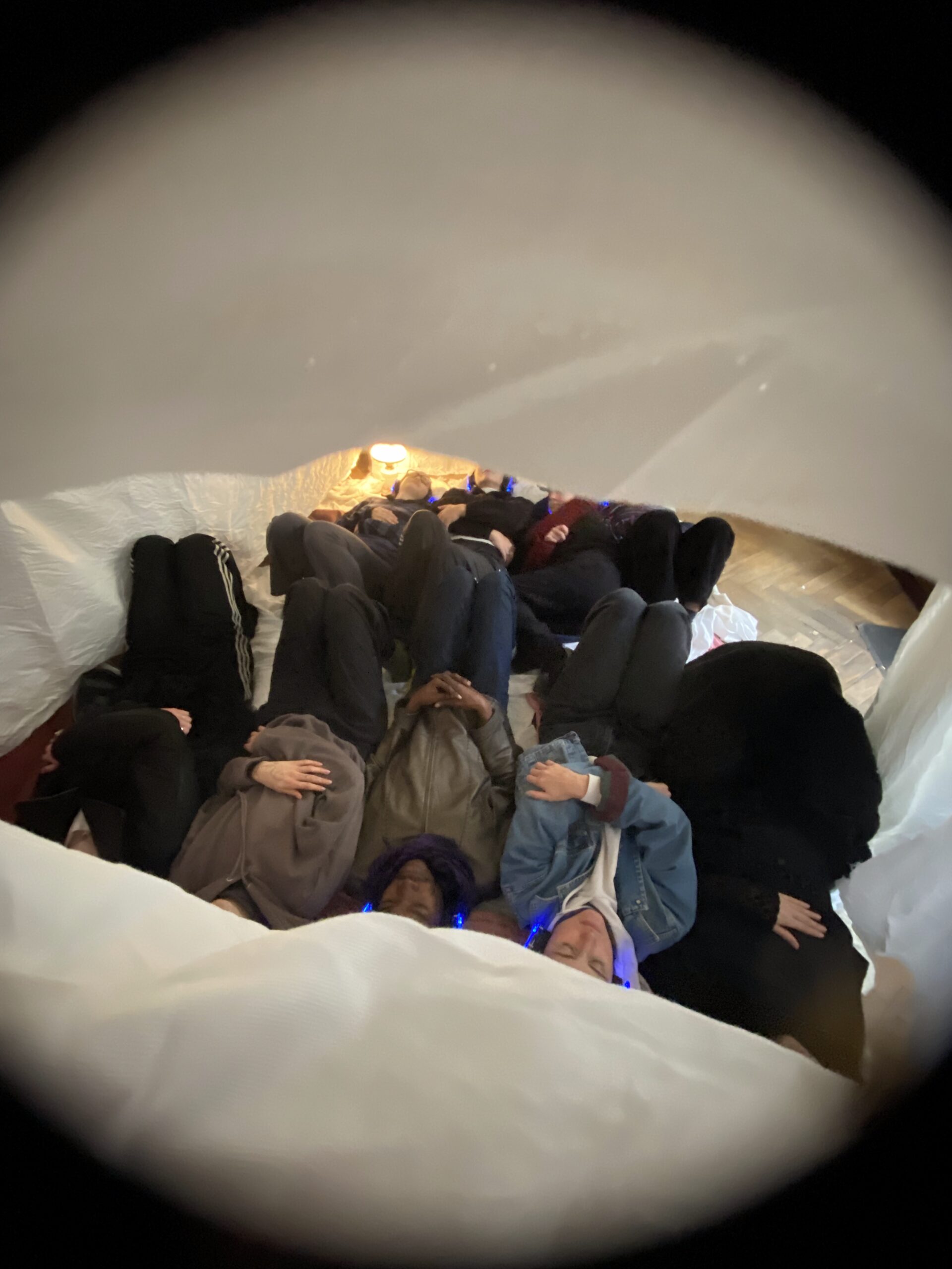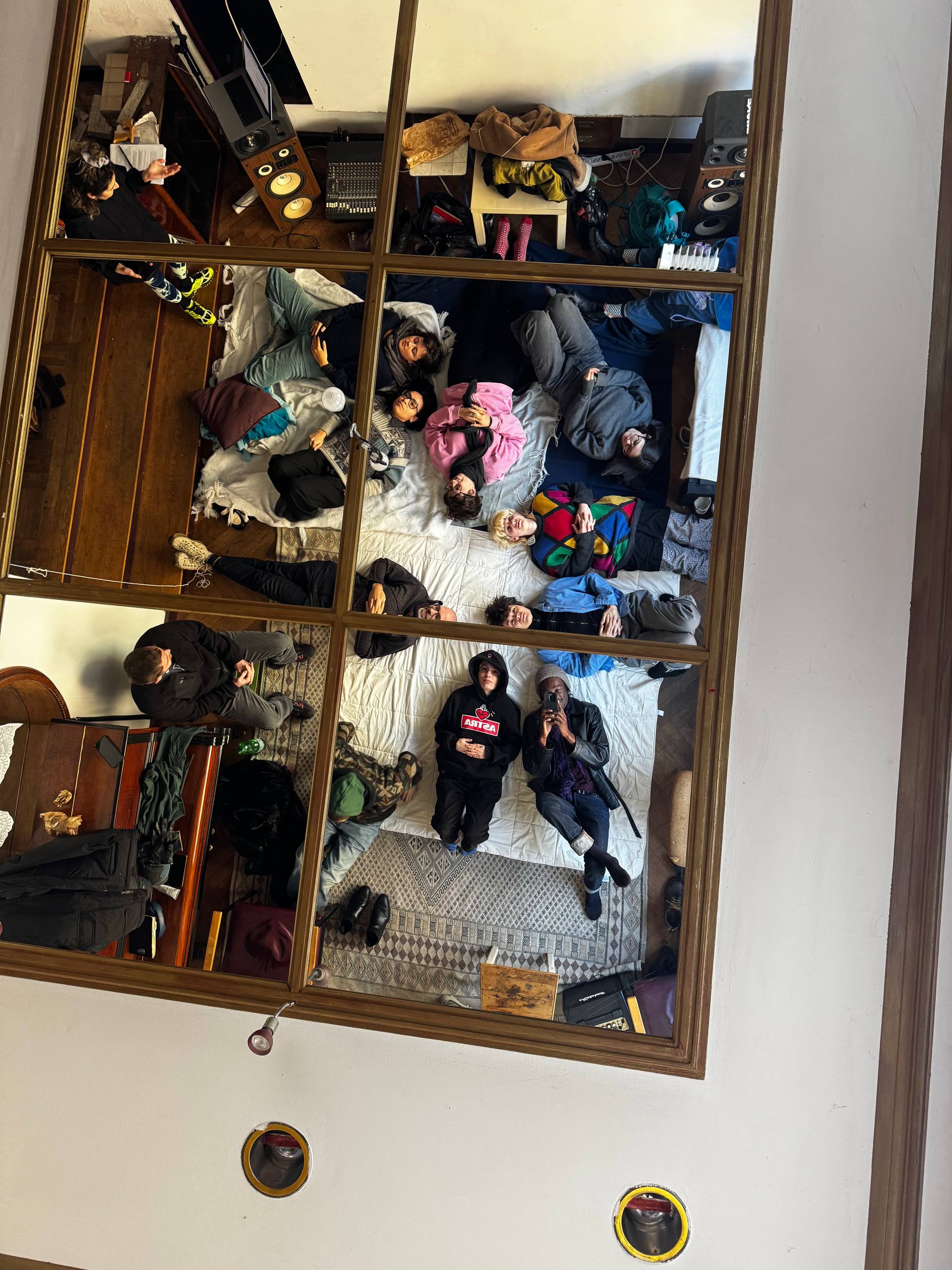 Across the week, we worked through shared practices of listening, movement, voice, spatial composition, and collective care. Rather than focusing on production, the workshop proposed a shift towards receptive states, drifting attention, and embodied experimentation. Students developed their own spatial and performative propositions, exploring how atmospheres of rest, fatigue, and post-club resonance can be composed and shared.