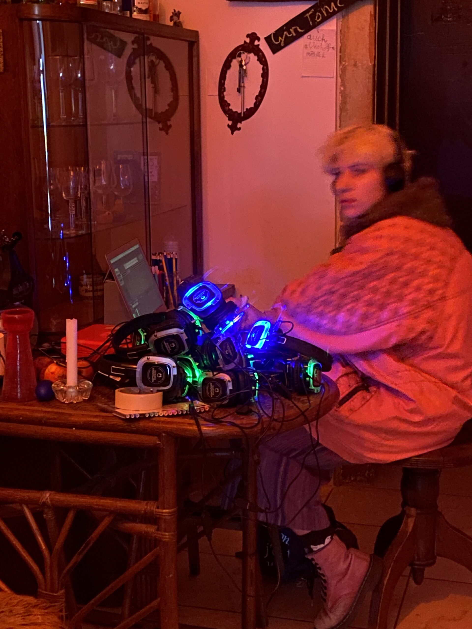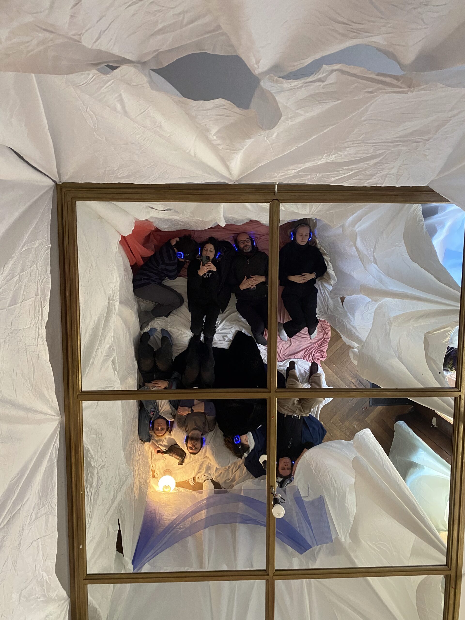 The workshop culminated in a public presentation on Friday evening: a collective Hypnagogic Club Session developed and hosted by the students. The audience was invited into an immersive environment shaped by sound, light, objects, and subtle guidance, offering a shared experience between wakefulness and sleep.