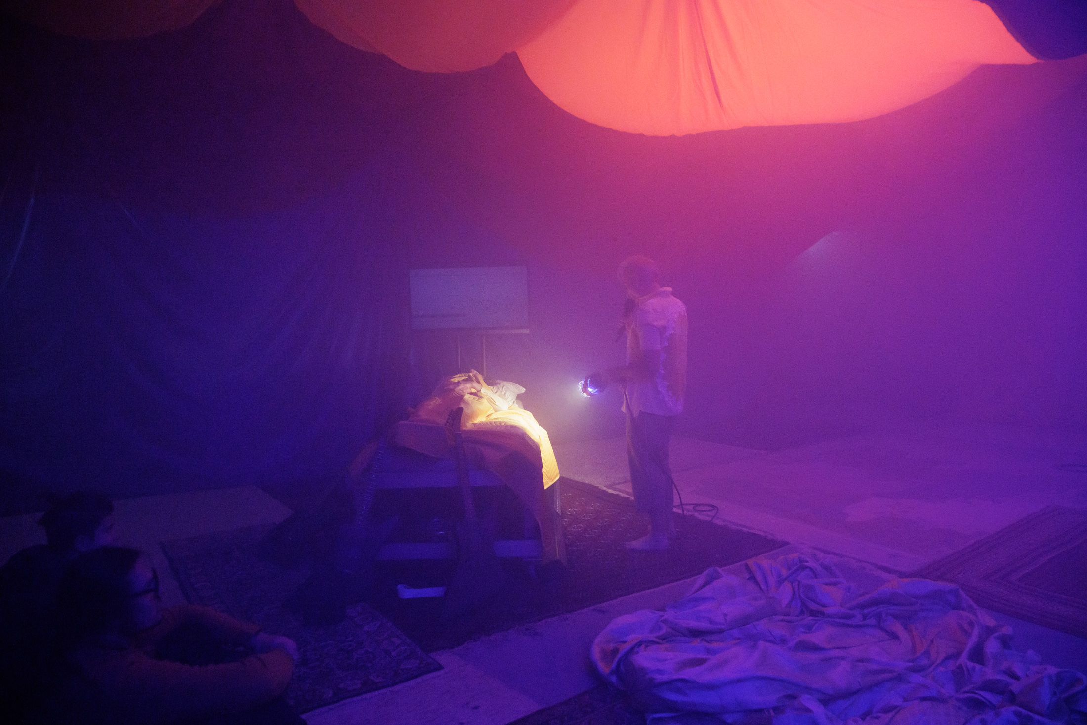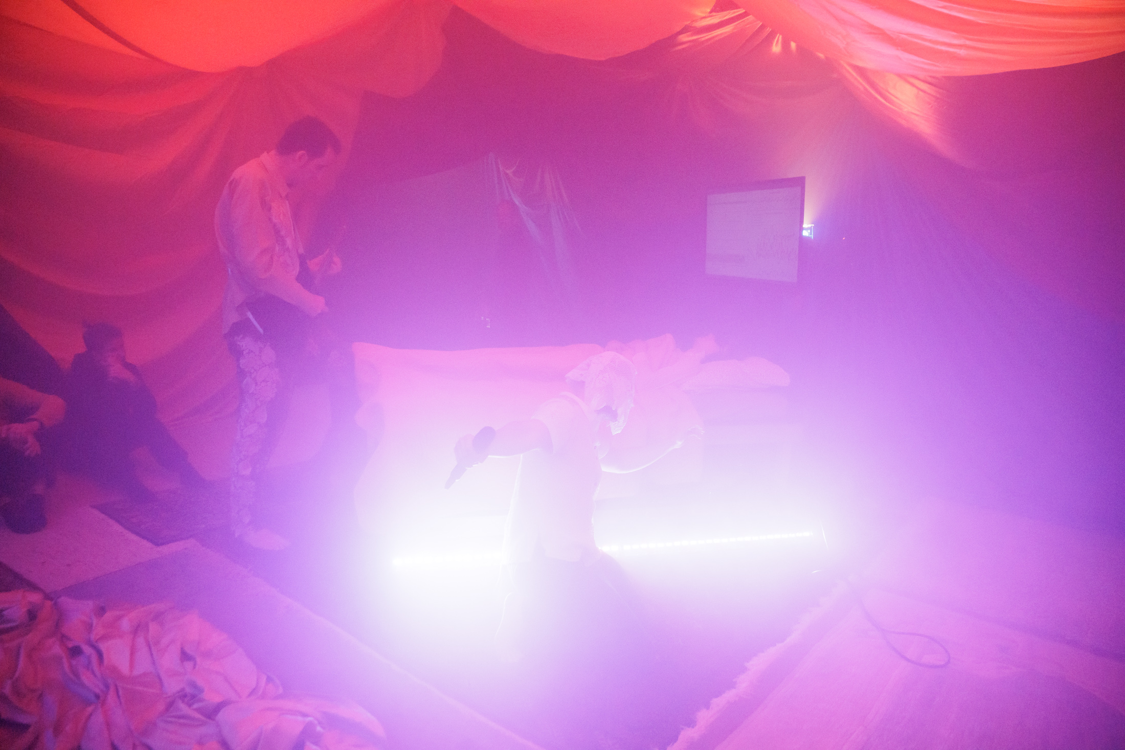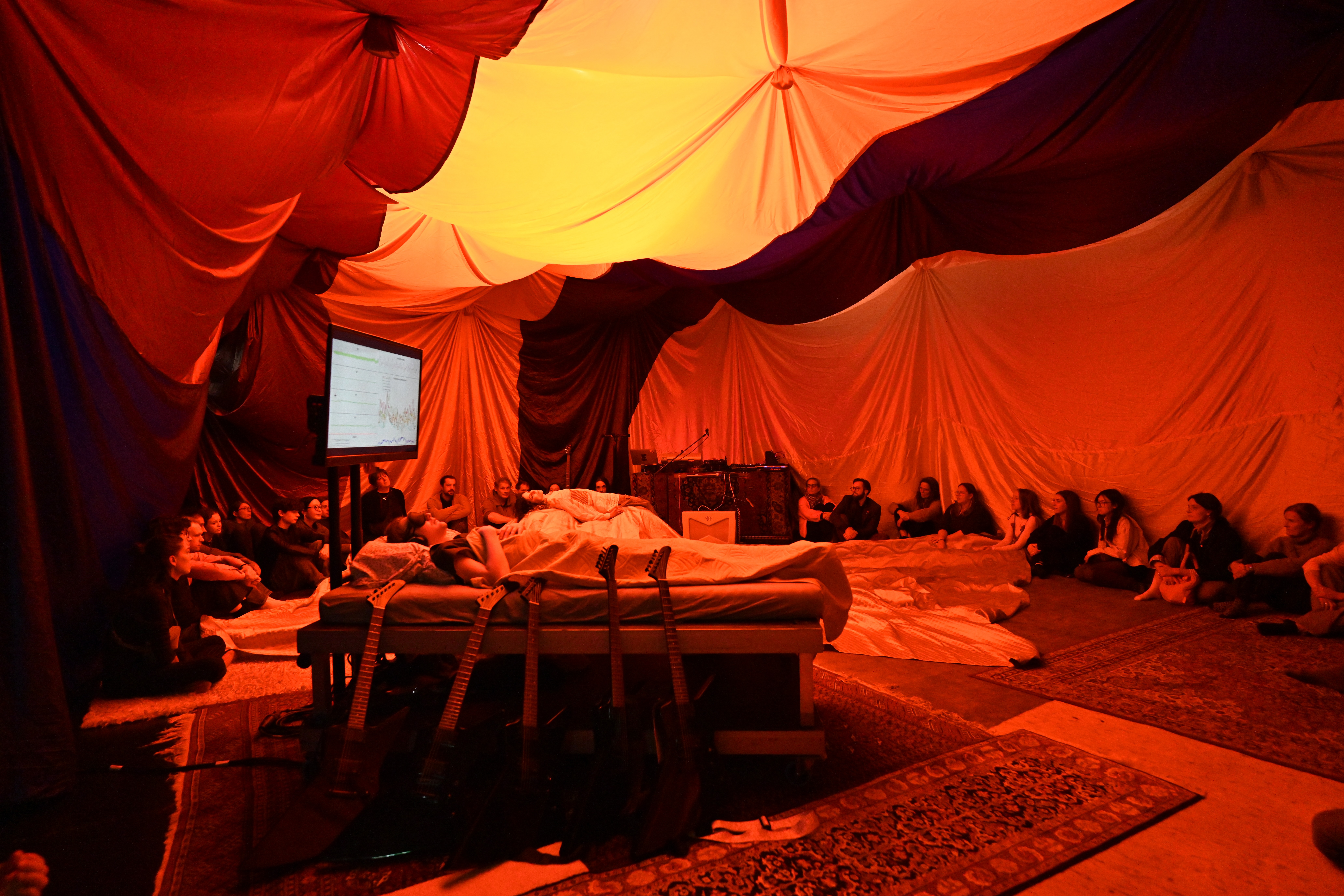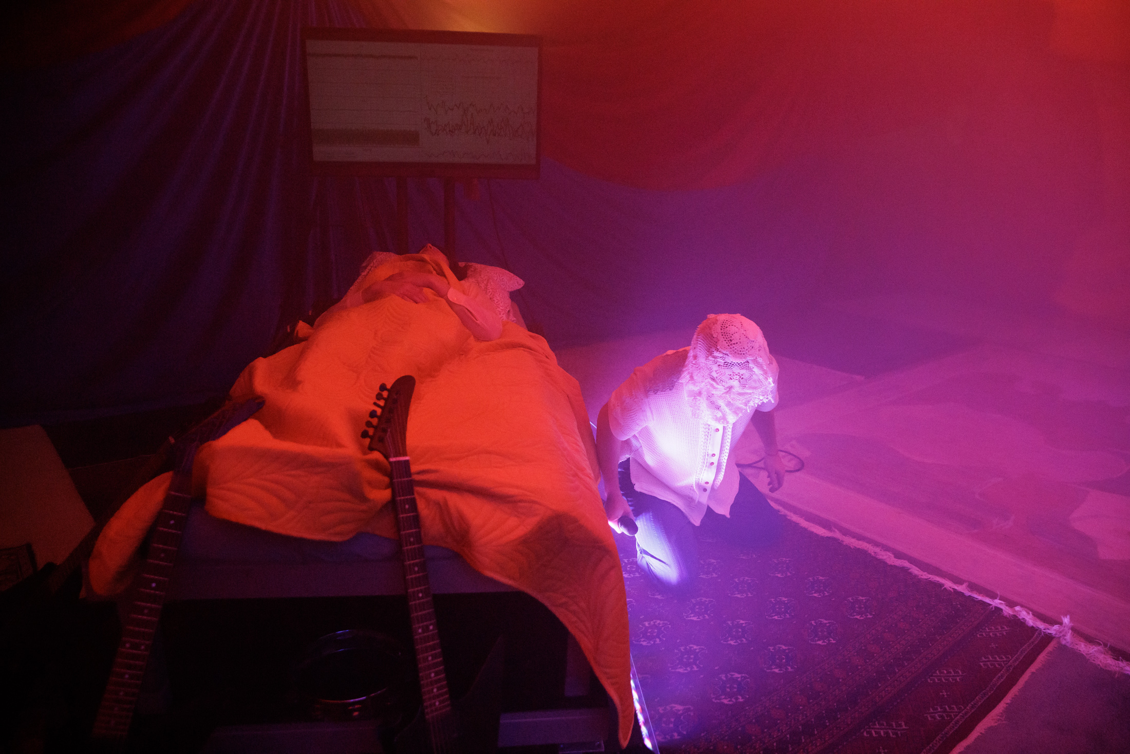 This performance treats sleep not as absence but as presence. An unstable force that intrudes, disrupts, and escapes capture. Through sound, voice, and movement, it summons a nocturnal zone where lullabies meet post-club echoes, where listening drifts and orientation falters.