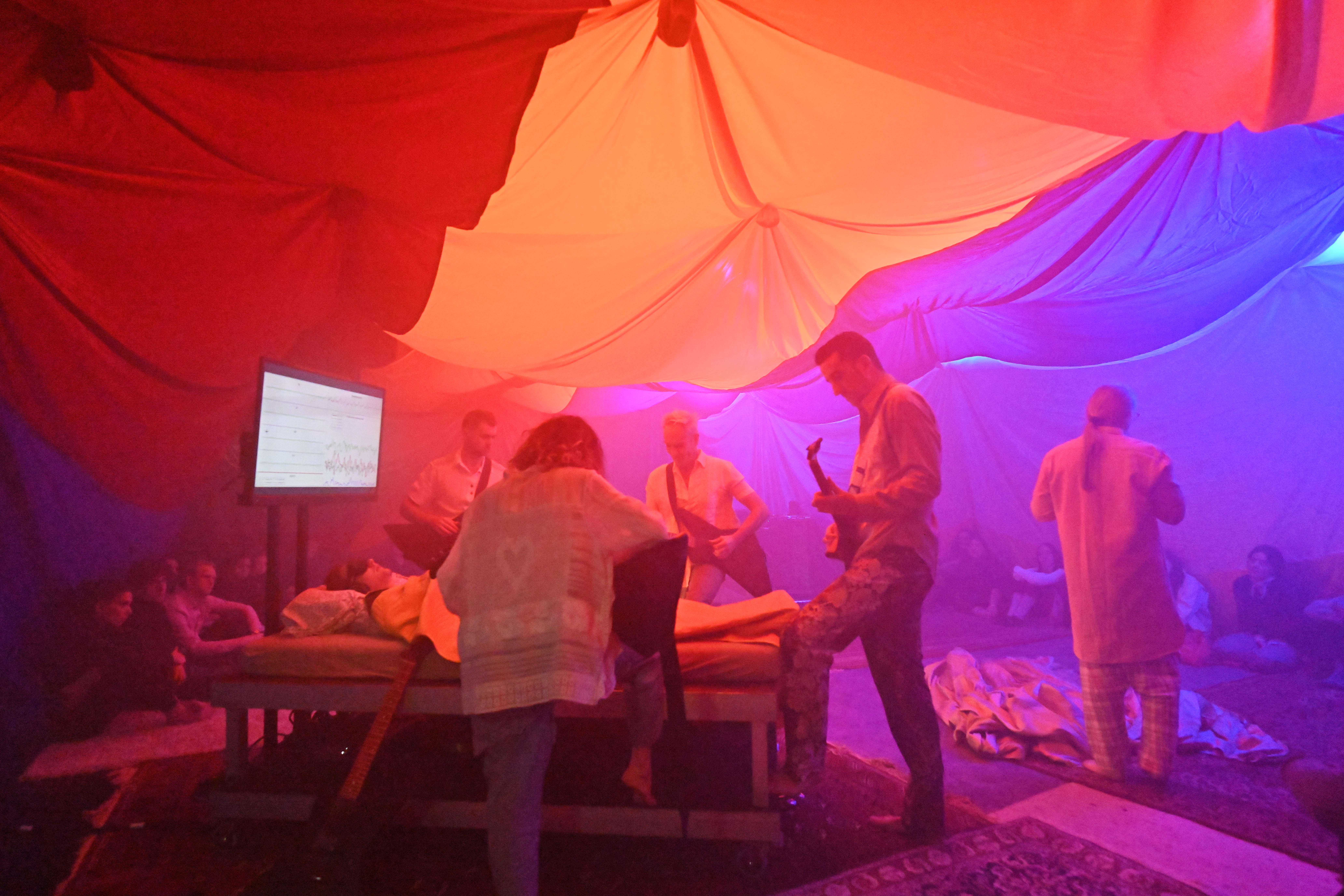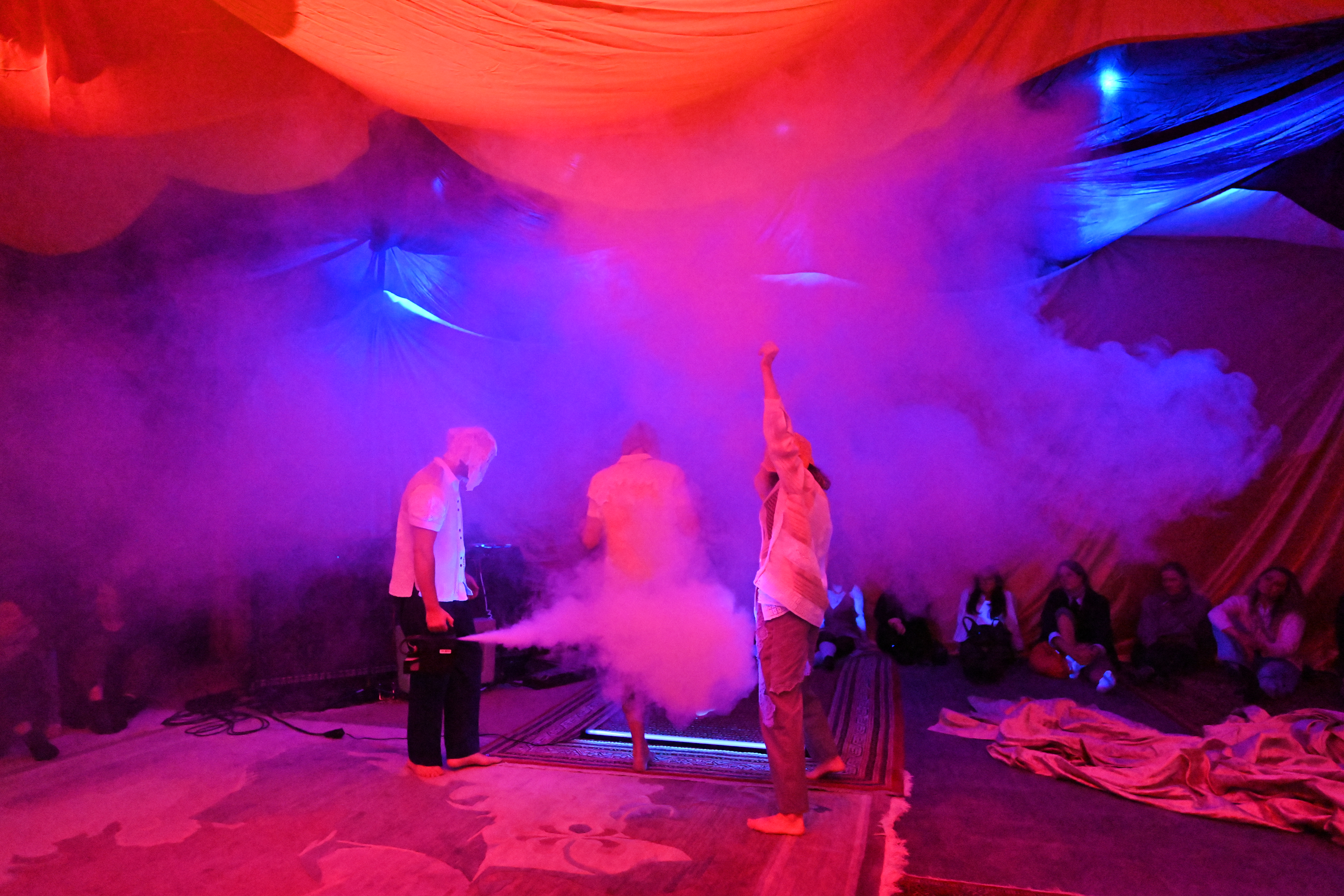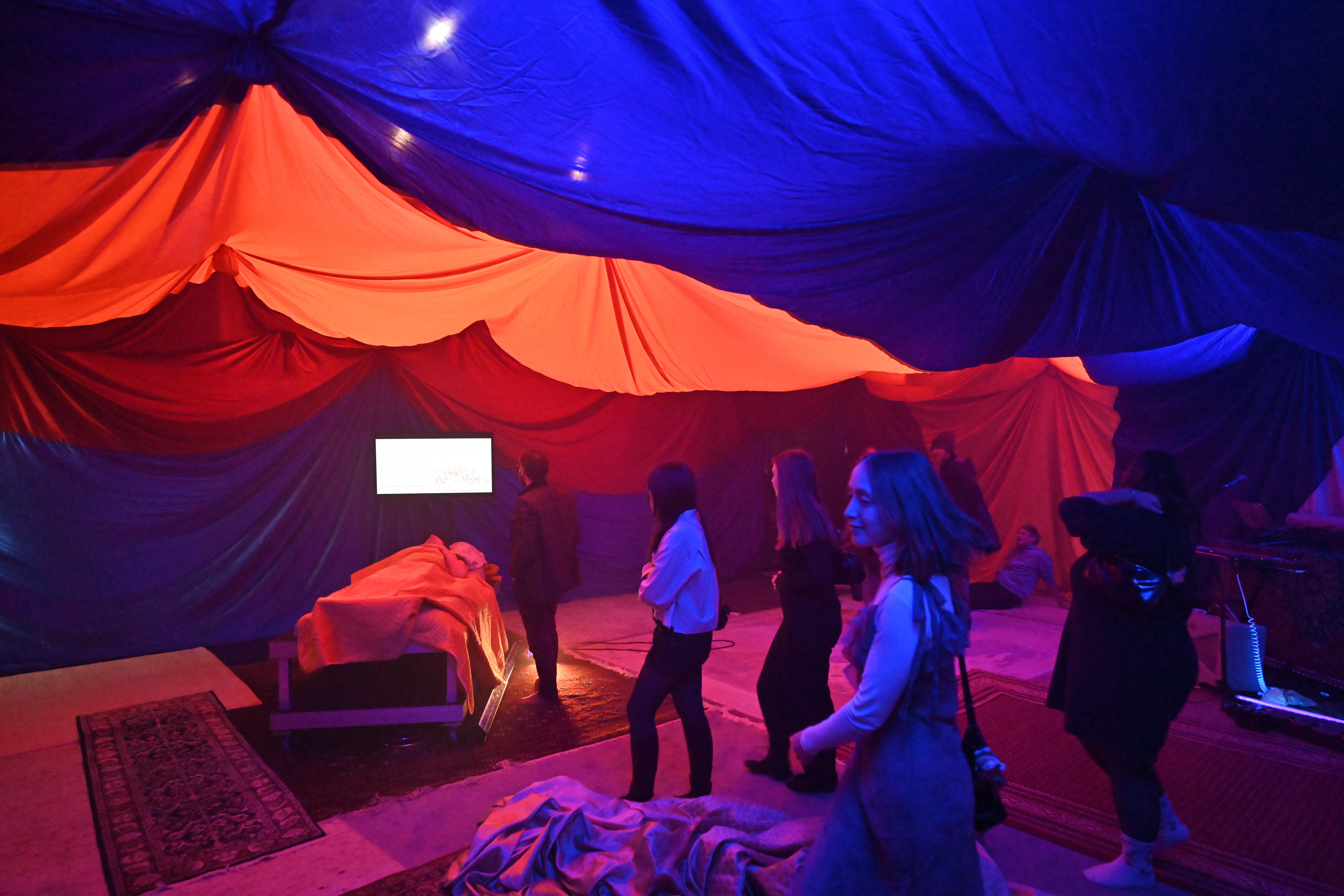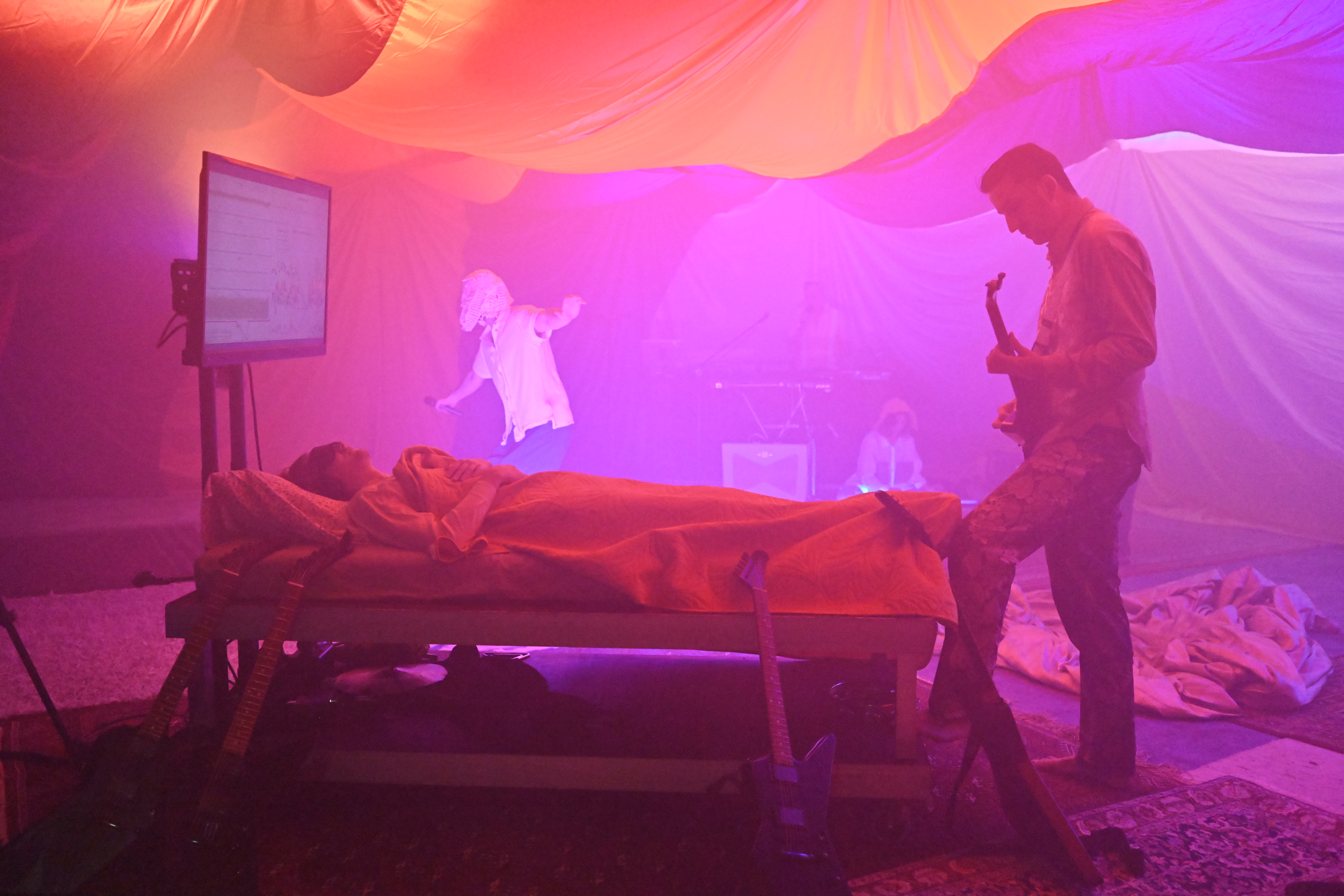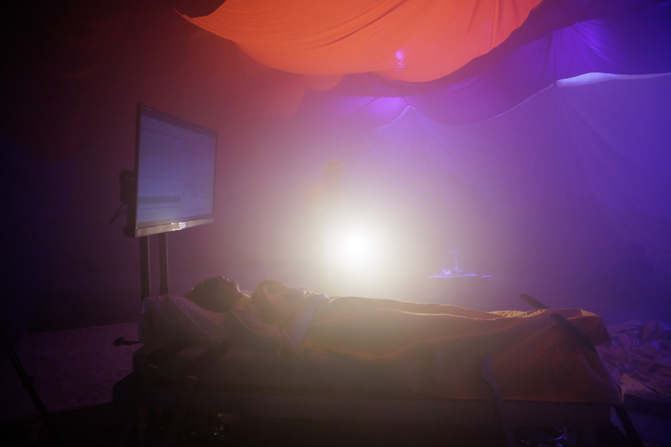 This performance treats sleep not as absence but as presence. An unstable force that intrudes, disrupts, and escapes capture. Through sound, voice, and movement, it summons a nocturnal zone where lullabies meet post-club echoes, where listening drifts and orientation falters.